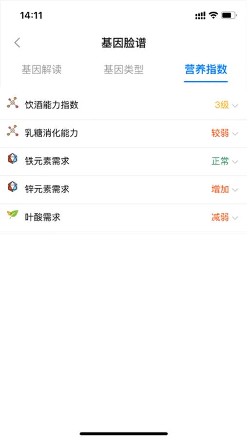 基因脸谱APP,是预防药源性疾病的一项创新性技术,也是一种预防前移、主动健康的新路径,可实现一种全新及时便利的个体化用药场景;包含基因用药、妊娠用药、相互作用、配伍禁忌、营养指数、家庭用药等主要功能。基因用药提供基于基因检测的个体化安全精准用药提醒;妊娠用药提供基于美国 FDA妊娠期药物安全分级的妊娠用药快速查询;相互作用提供基于美国 FDA妊娠期药物安全分级的妊娠用药快速查询;配伍禁忌提供输液配伍禁忌的快速查询;营养指数提供基于基因检测的个人饮酒能力、乳糖消化能力、叶酸利用能力等,为妊娠、儿童发育、疾病预防等提供个体化营养摄入提醒。