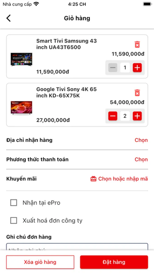 Tùy vào nhu cầu của bạn, hãy nhanh tay đăng ký thành viên với ePro, bạn sẽ được đội ngũ nhân viên tư vấn tận tình, trải nghiệm cảm giá mua hàng (sỉ và lẻ) Điện máy Online, với sự đảm bảo và giám sát trực tiếp bởi các thương hiệu Điện máy uy tín hàng đầu đang phân phối tại Việt Nam.