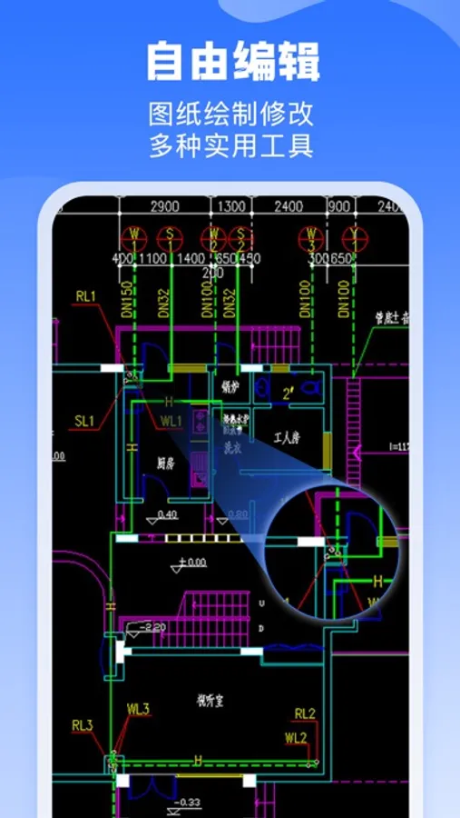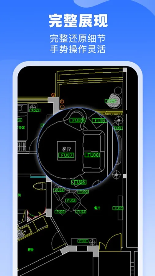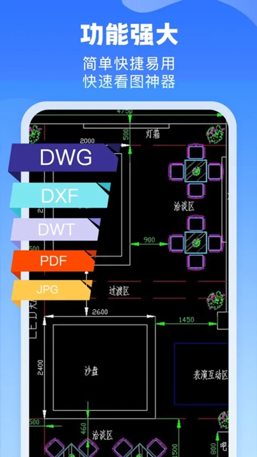 1. 快速看图:支持导入多种格式的CAD图纸,包括dwg/dxf/dwt等,快速在手机上预览CAD图纸,各种平面图纸随意查看,解除看图限制。