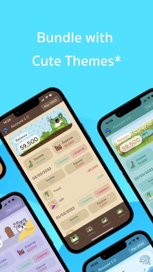 Most simple income and expense tracker, with many cute themes. Easy to use and understand. Organized in categories.