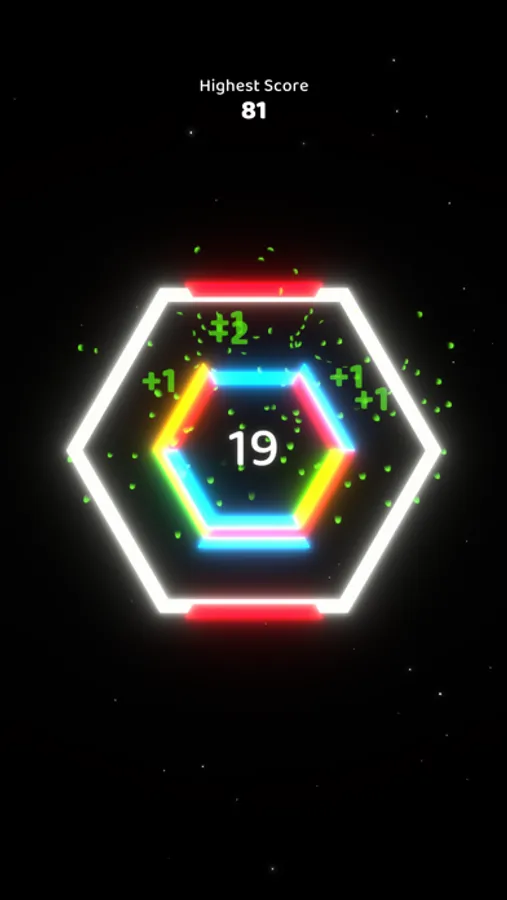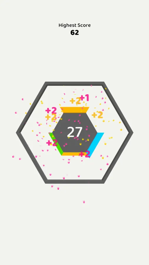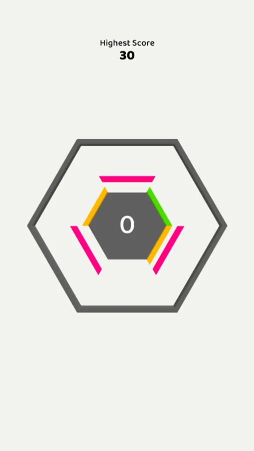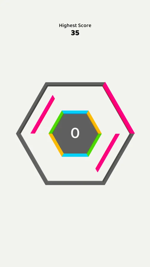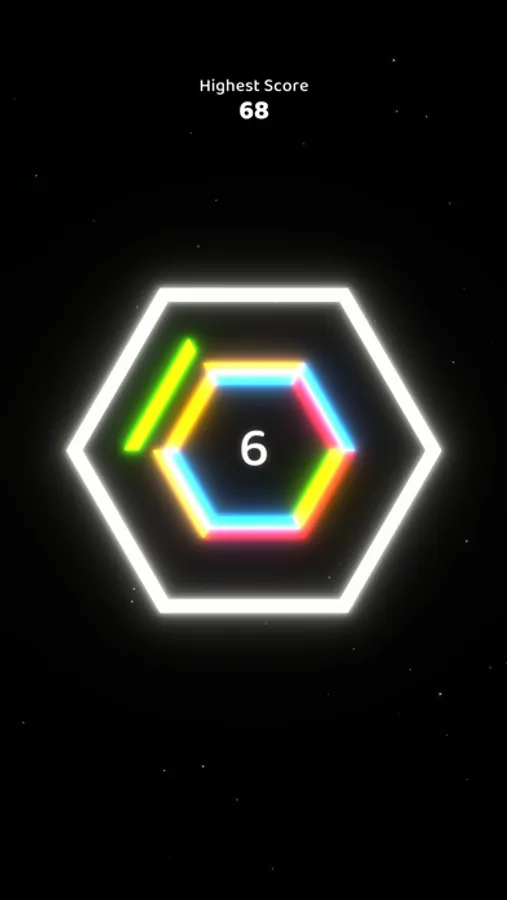 Blocks start on the edges of the screen and fall towards to inner hexagon!