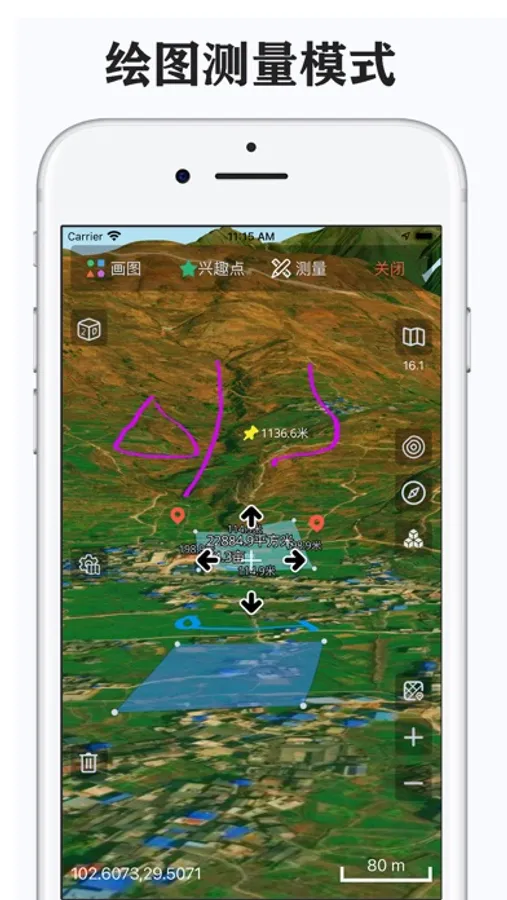 7. 3D地形:双指下拉或上滑即可查看真实地形地貌,户外好帮手;