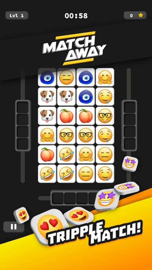 Here is the Match Away, the ultimate triple-match puzzle game! A brand-new match 3 game with a unique slide-to-slot mechanic!