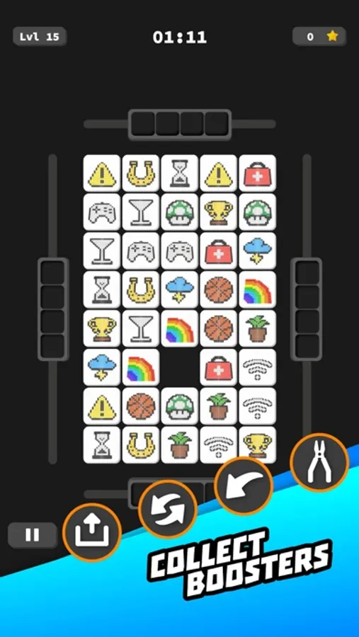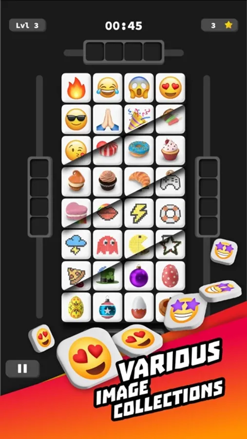 Find the matching tiles, swipe them to the same matching board, and have fun.