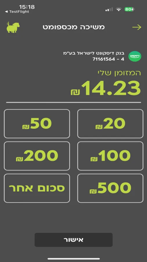 טעינת הכסף לאפליקציה מתבצעת ישירות מחשבון הבנק שלך, אשר שוייך ברישום לחשבונך, בעזרת השירותים המתקדמים של תקן הבנקאות הפתוחה. כך שבעצם יש לך כספומט בכיס!