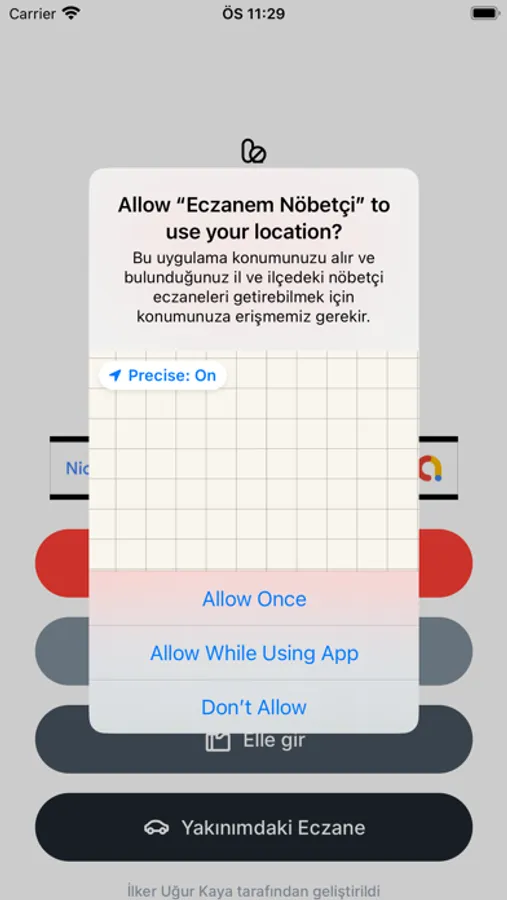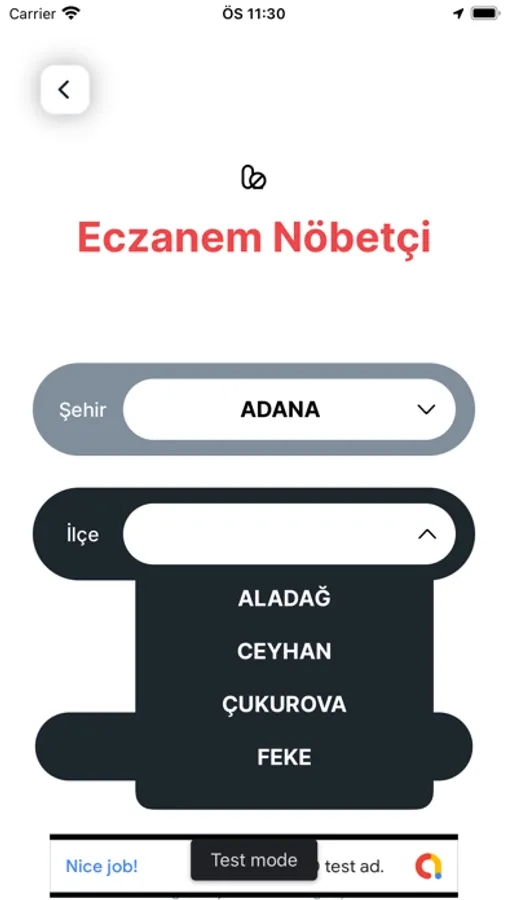 Uygulama ilk açılışta (izin verirseniz ) konumunuza göre şehir ve ilçeleri getirir.