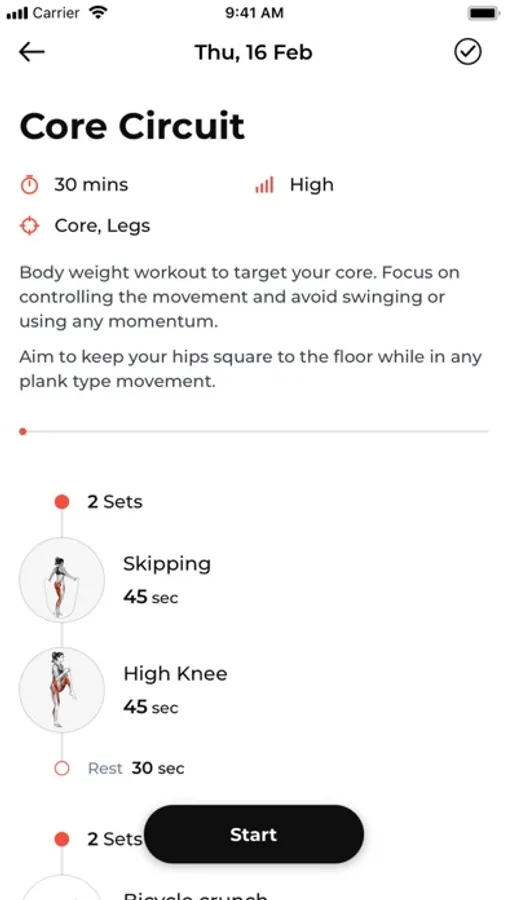 App also uses Apple Health to track energy burned and heart rate during a workout session, if an Apple Watch is used.