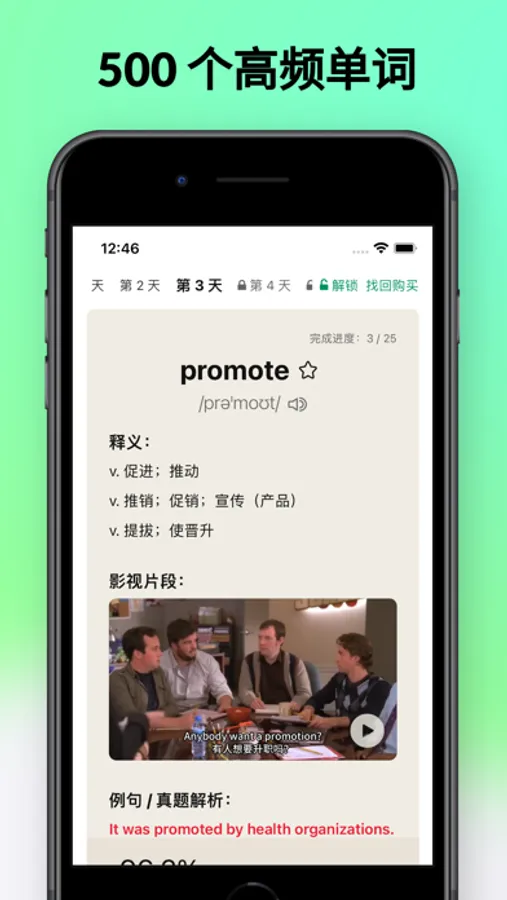 每天 25 个单词,20 天完成 500 个高频单词的学习。