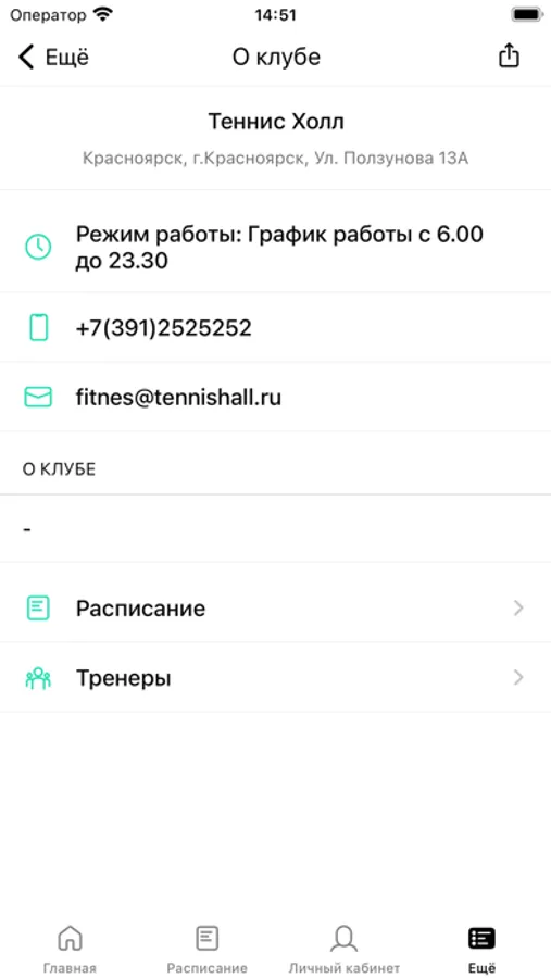 Приложение для клиентов фитнес клуба Теннис Холл Красноярск