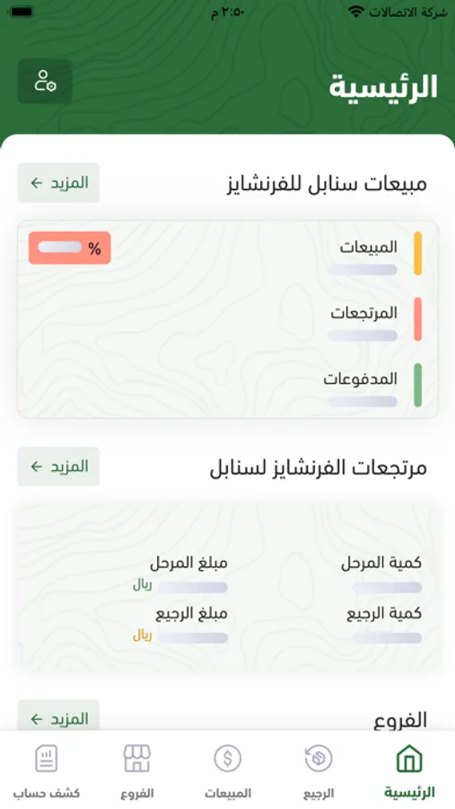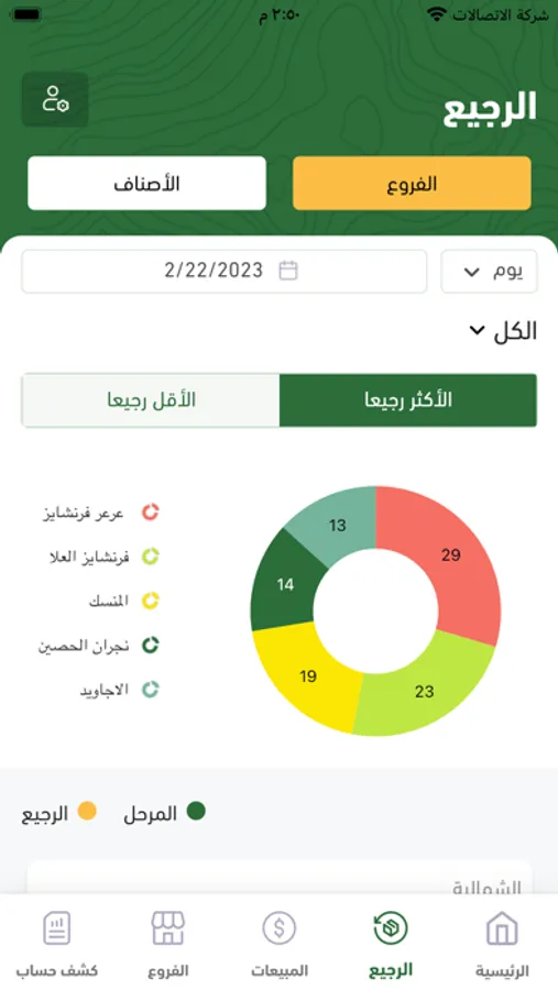 التطبيق لغرض عرض الإحصائيات الخاصة بكل فروع شركة سنابل