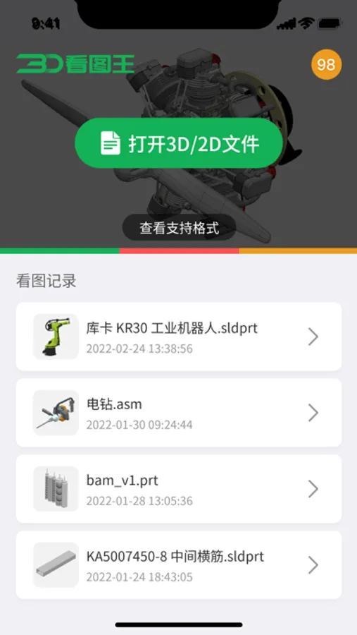 3D看图王是一款手机查看3D模型与2D 图纸的看图工具,支持40多种3D模型和2D图纸,可应用到产品研发设计、生产制造、售后服务等多个环节的工作中。
