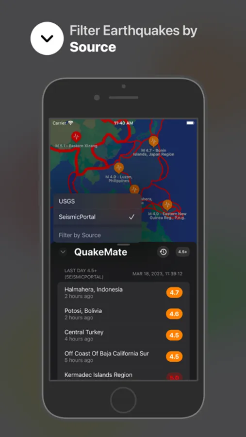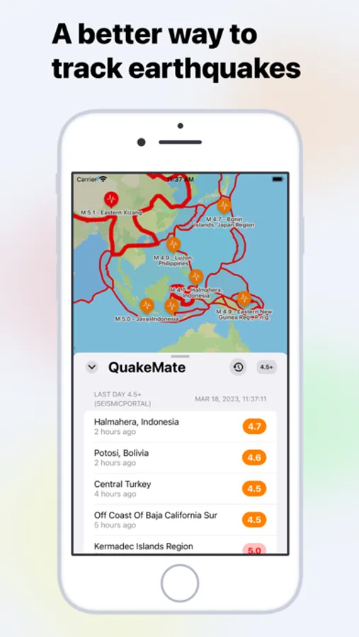 QuakeMate is the essential app for staying informed about earthquakes worldwide (including USGS, SeismicPortal, GSI).
