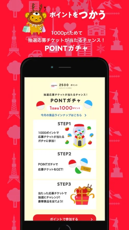 ●1000ポイントためて抽選応募チケットが当たるチャンス!「POINTガチャ」
