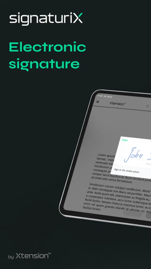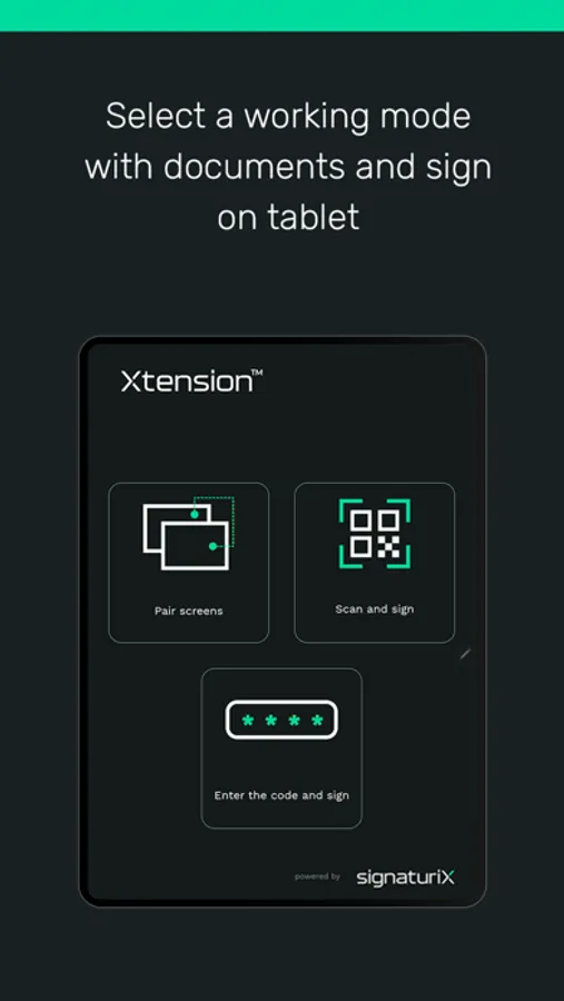 The signaturiX mobile application allows documents to be signed electronically on a mobile device using the signaturiX platform.