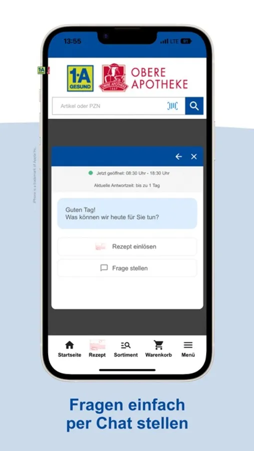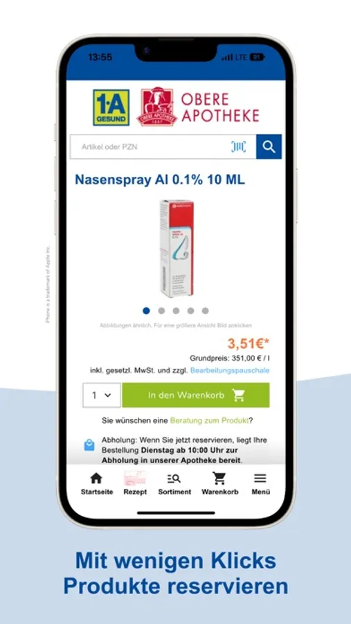 Wir bieten Ihnen über die App unser gesamtes Sortiment. Nicht sofort verfügbare Produkte bestellen wir für Sie und machen Sie in der Regel bis zum nächsten Werktag abholbereit. Gerne liefern wir Ihnen Ihre Bestellung per Botendienst direkt nach Hause.