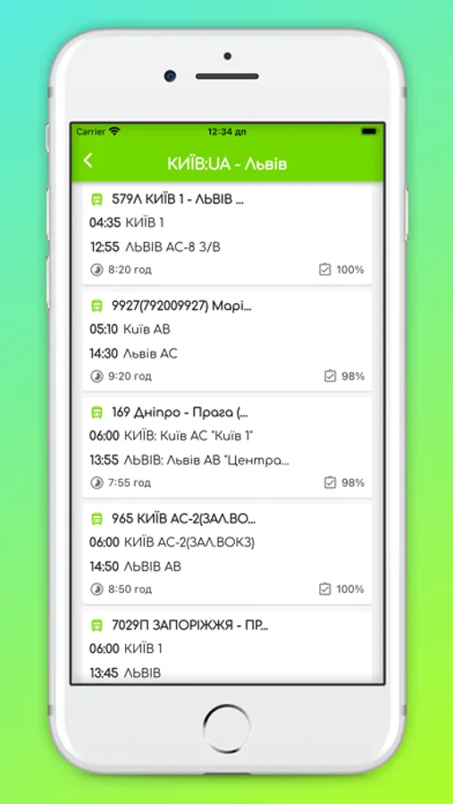 2. Пошук автостанцій і перегляд її табло маршрутів онлайн.