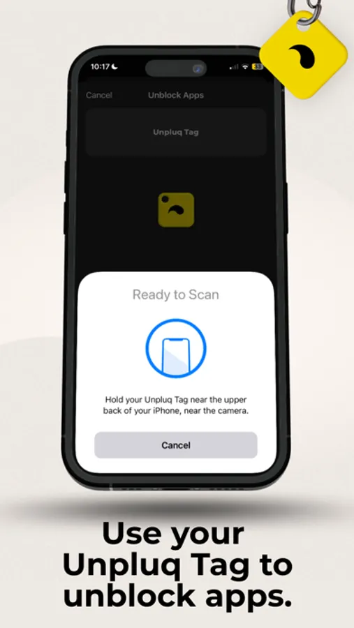 Do you have an Unpluq Tag? Pair your Tag with your Unpluq app anytime to save more time. The NFC powered yellow Tag fits on your keychain and works with your app. Science like Rational Override Theory shows that this physical ritual to get virtual control of your phone is the most effective way to change your screen time habits.