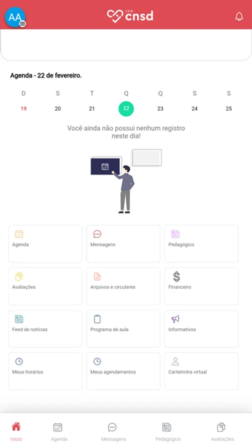 • Consulta ao registro diário para os pais acompanharem a rotina do estudante como alimentação, higiene e sono.