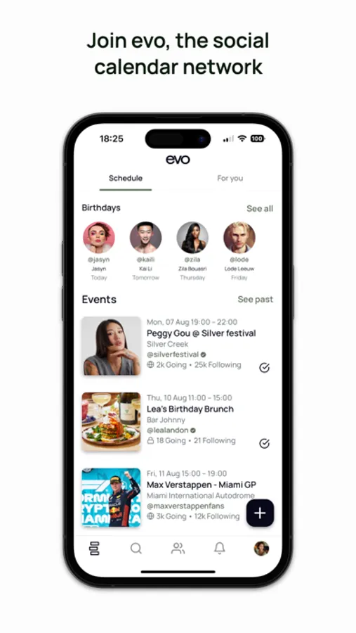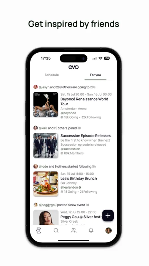 Connect with communities & friends through evo group calendars, a revolutionary new way to share events that sync to everyone’s personal digital calendar automatically.