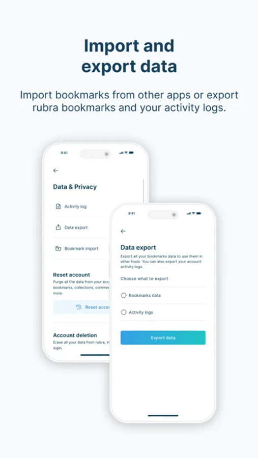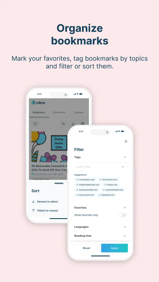 With rubra, you can get started right away without setting up an account. If you prefer to have your bookmarks synced and easily accessible across devices, setting up an account is an easy and convenient option. The choice is yours.