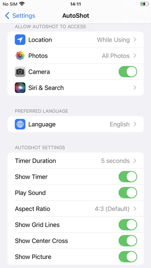 It automatically takes a photo and returns to the home screen. By activating this app with Siri or NFC tags, you can take a photo without touching the screen, which is very convenient when your hands are busy or gloves prevent you from touching it. You can set a timer to take a picture, play a sound, and display a grid line on the screen.