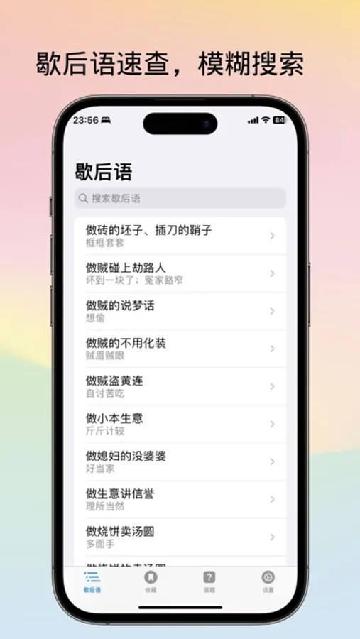 - Support the quick search of allegorical sayings, and enter any keyword of the question or answer to search