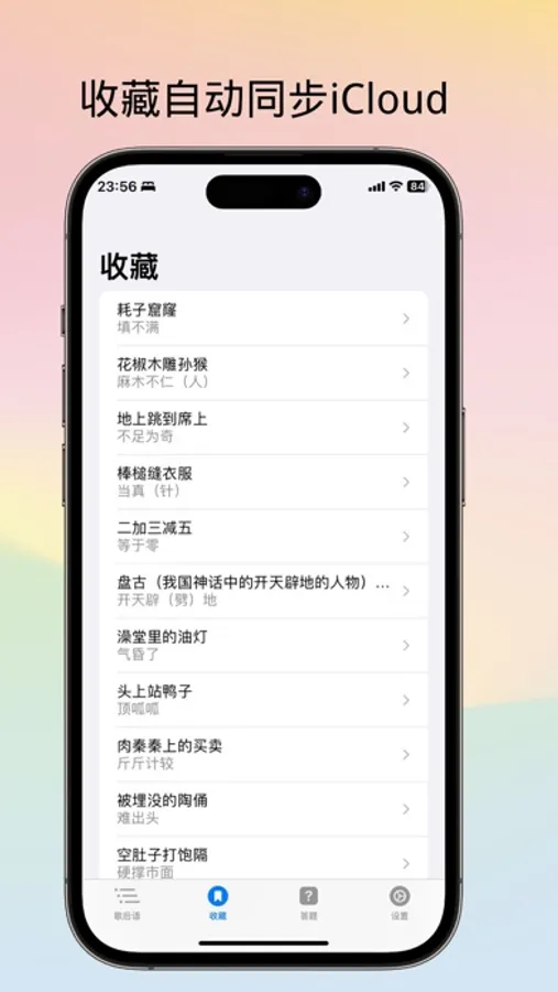 - Favorite allegorical sayings are automatically synchronized to your private iCloud storage