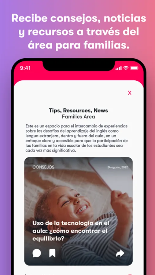 We have developed a tool with which you can be more connected with your children's day-to-day lives and the activities they carry out directly on your mobile phone.