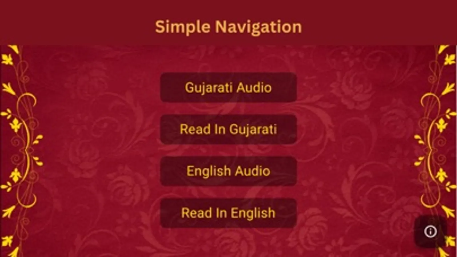 The app's home page is easy to navigate, with sections for English and Gujarati text and audio of the chalisa.