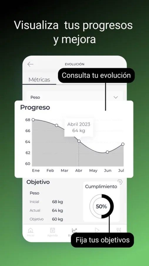 Recibe la planificación diaria de todas las actividades, sesiones y dietas elaboradas por mi 100% personalizadas, a través de mi APP. Comparte conmigo todos tus resultados y evolución de manera rápida y eficiente.