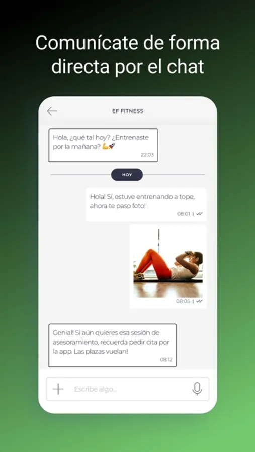 Estaré junto a ti apoyándote durante todo el proceso, respondiendo tus dudas al instante. Logremos tu mejor versión en el mejor equipo, Team EF fitness.