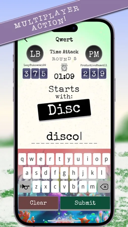 • Challenge opponents and friends in a real-time PVP war of words in Time Attack and Wordplay