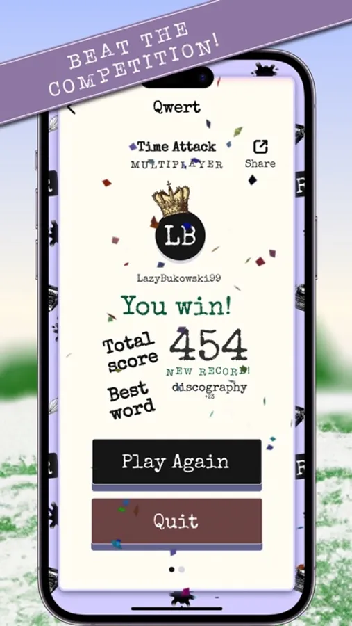 In Qwert, there are no letter tiles – it's just you, your brain and the keyboard. Come up with words based on open-ended prompts and type as quickly as you can in fast-paced face-offs and stimulating, brain-training solo games. Take on friends and challengers in real-time head-to-head battles or fly solo to beat your personal best.