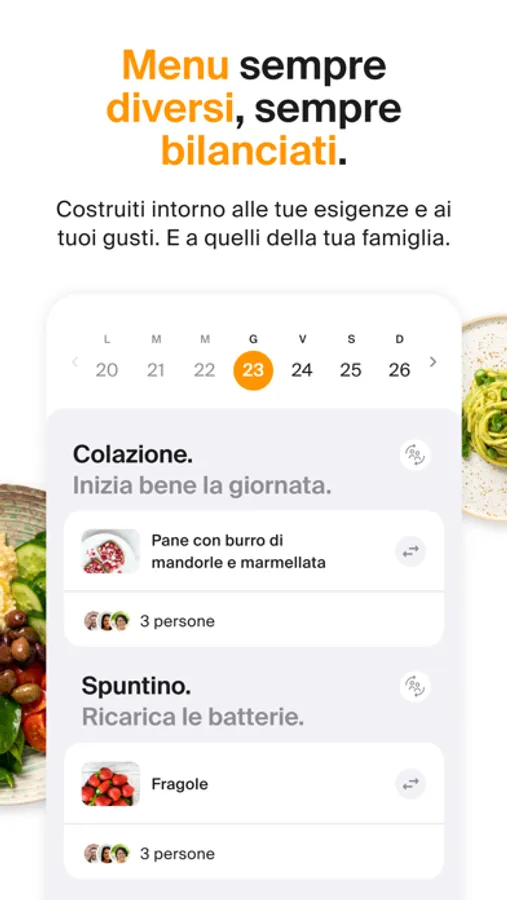 - Menu sempre diversi e sempre bilanciati costruiti intorno alle esigenze e ai gusti tuoi e della tua famiglia.