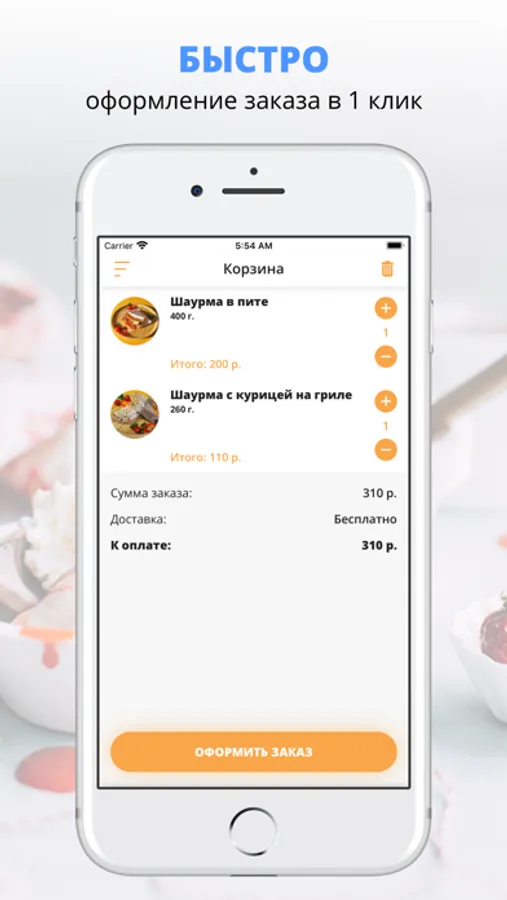 Скачивайте наше приложение, оформляйте заказ и наслаждайтесь любимой едой, где бы Вы ни были! Приятного аппетита!