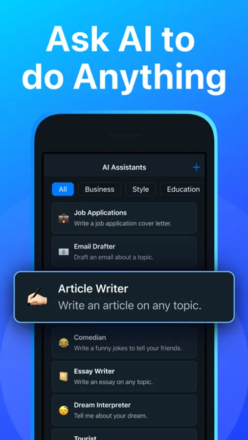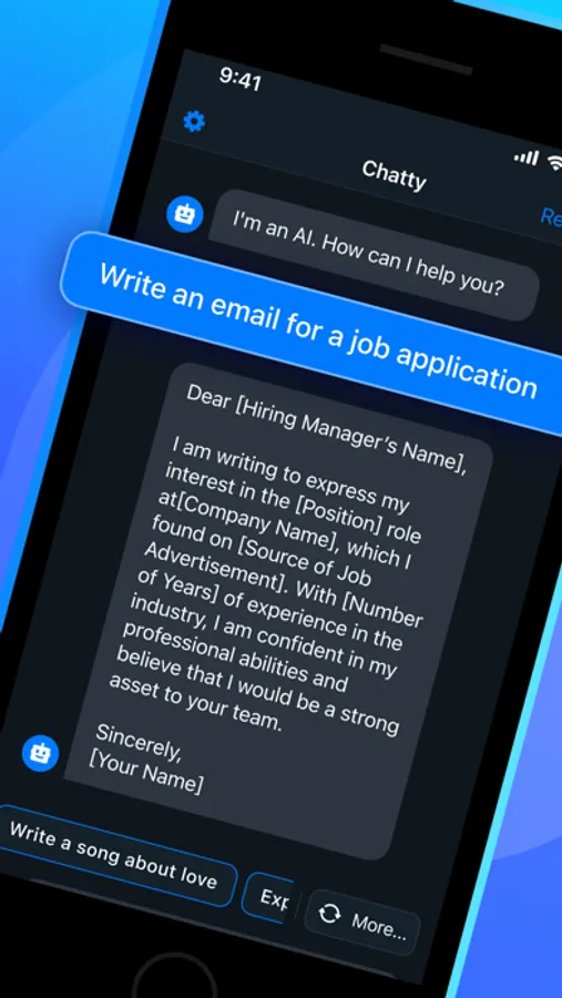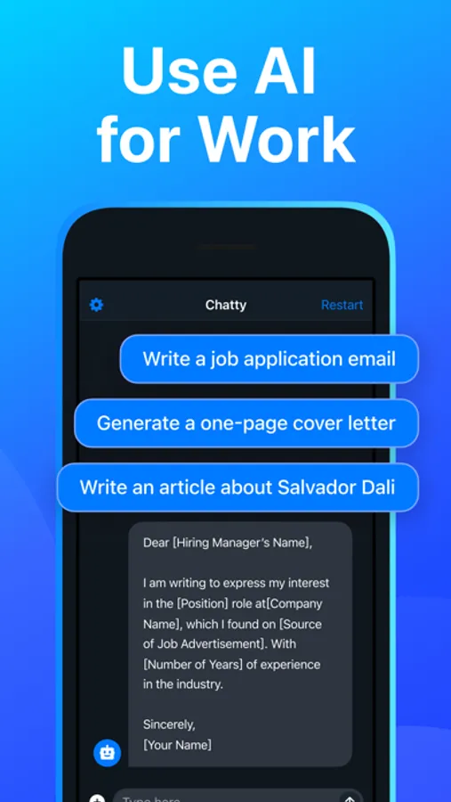 • Use responses in other apps – copy and paste the ai’s responses in your favorite apps to get more work done: use it for email, social media and more!