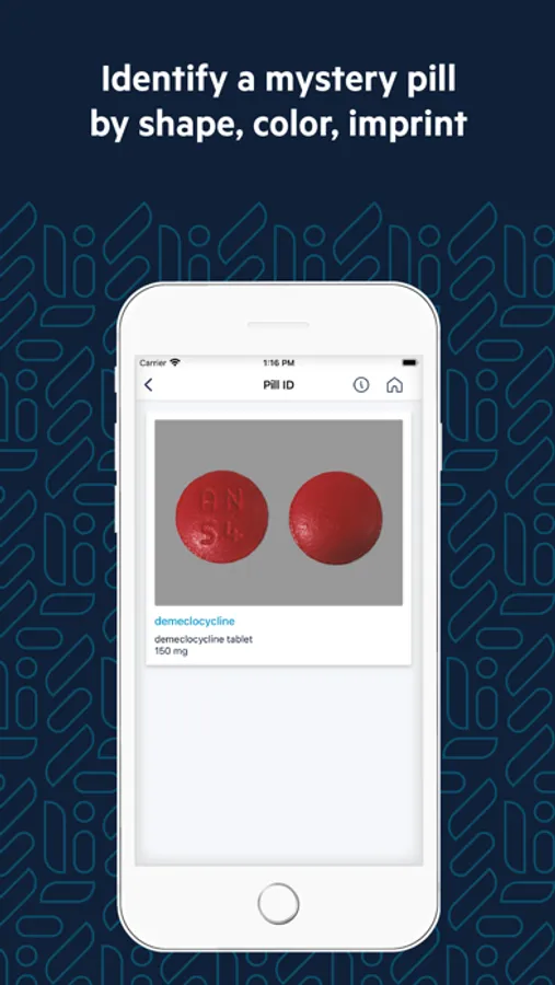 • Pill identifier: drug guide organized by shape, color, imprint code, etc.