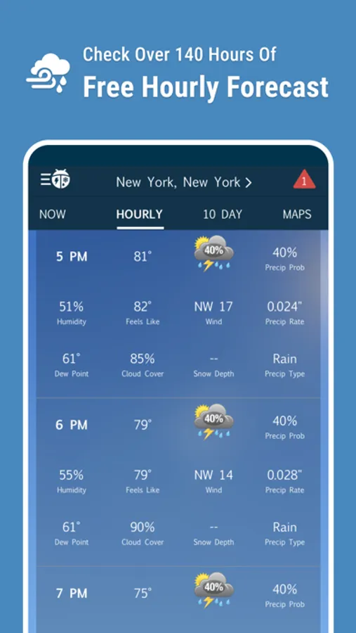 Enjoy Free access to 10-Day Forecast and over 140 hours of Hourly Forecast!