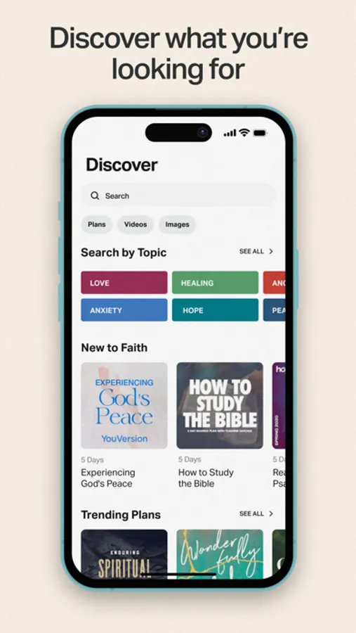* Thousands of Plans: Devotionals and Plans that lead you through specific topics, portions of the Bible, or the entire Bible in a year (both Bible in One Year and One Year® Bible)