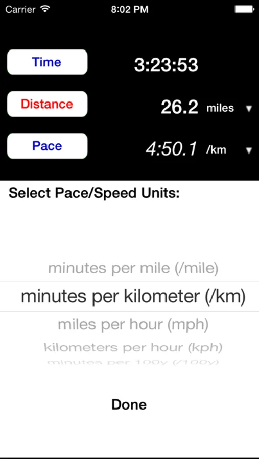 • Use your preferred units of distance (miles, kilometers, etc.) and pace/speed (minutes/mile, kilometers per hour, etc.), and convert between different units.