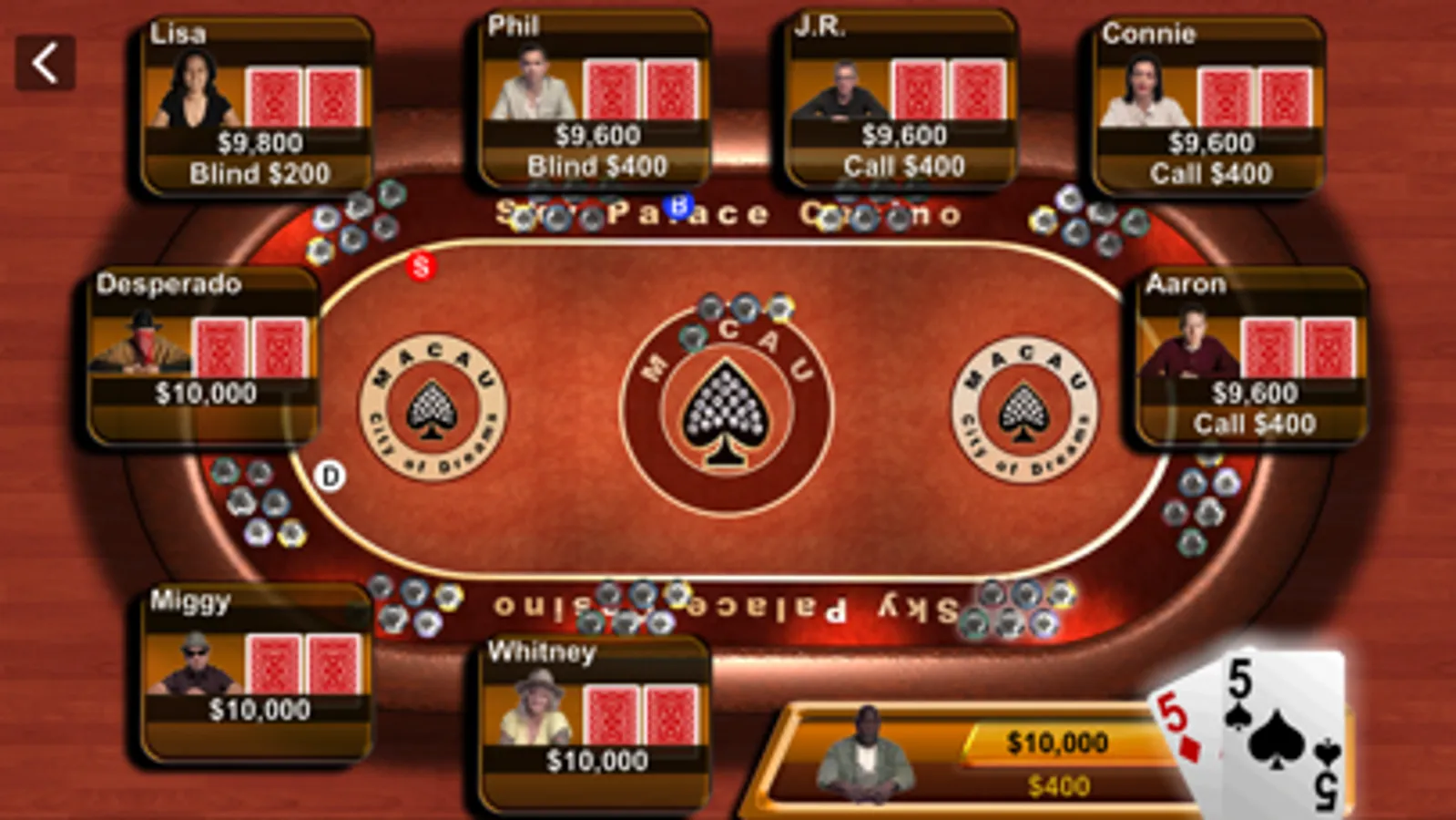 Texas Hold’em lets you play like a pro against 24 realistic opponents—or with your friends over Wi-Fi. Use all of the hints, tips, tells, and your mastery to gain access to more challenging locations with higher stakes and even bigger rewards!