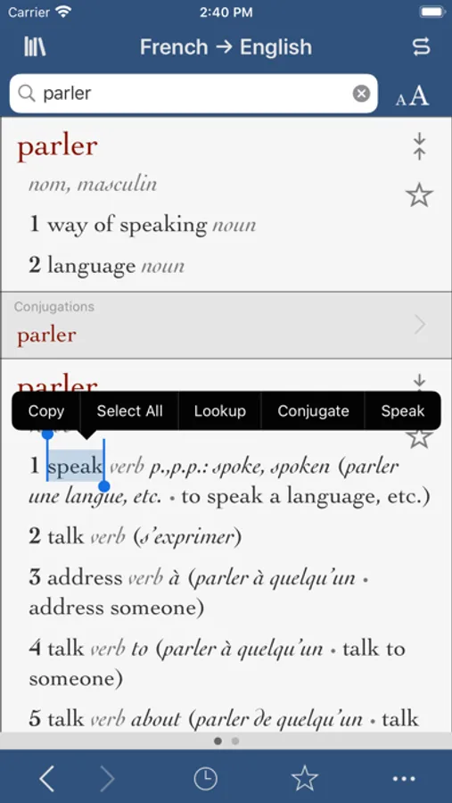 • Conjugate a verb from the dictionary results by tapping it