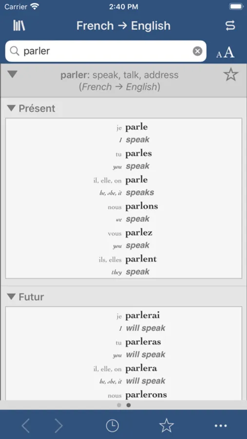 • Conjugations for thousands of French and English verbs