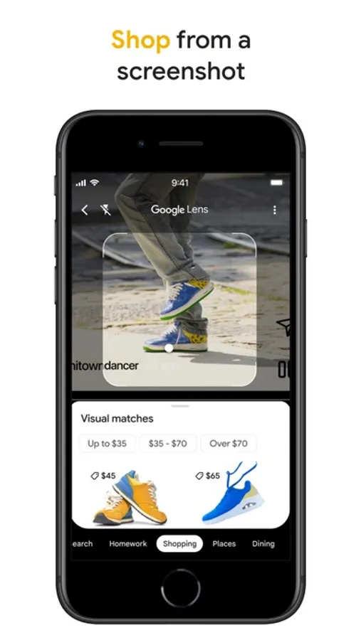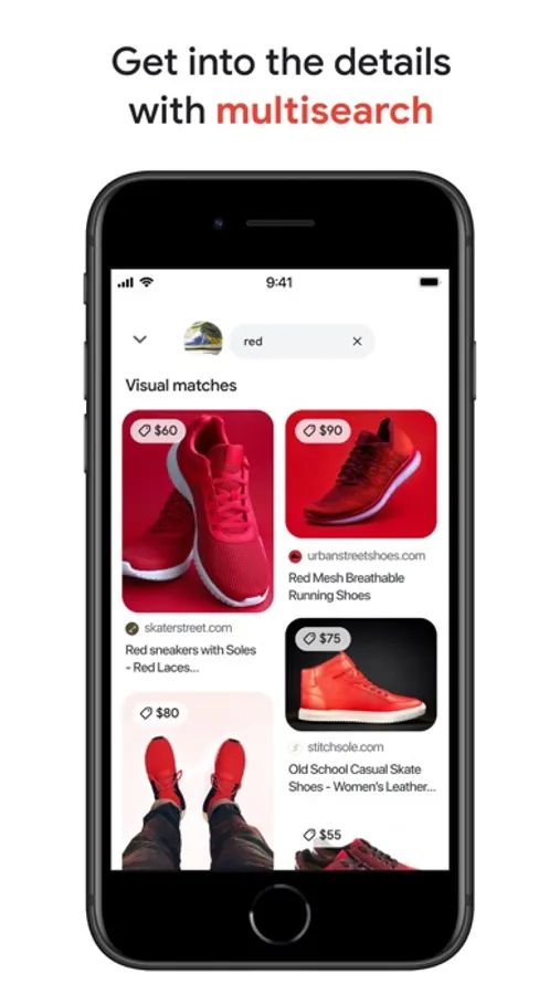 • Refine your camera searches by adding words – whether you want those shoes but in ‘blue’, or want to learn how to ‘repair’ that broken bit on your bicycle.