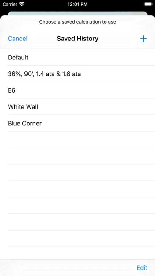 Chances are you regularly work with a specific set of mixes and and common dive situations. Nitrox Tools includes the convenience of saved settings that you can recall at a touch and adjust to a new situation as needed. You can also select mix values using pre-installed default mixes or your own saved custom mixes. When updating one of the mixes for a tool you are offered a list of saved mixes that you can use directly or adjust as needed. You can save the currently displayed mix by clicking the "+" button. Just like with the saved calculations, you can re-arrange or delete any mixes in your saved list.