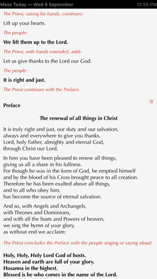 • “Mass Today” gives you the Order of Mass and today’s readings and prayers, all in one page. Bishops have been known to use it to say Mass from their iPads!