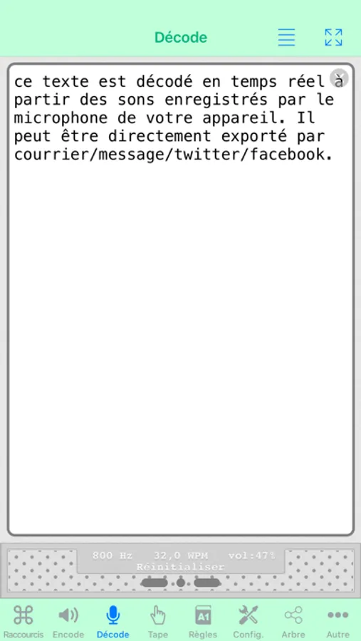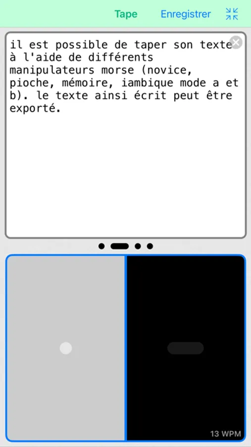 Exclusive feature that allows you to decode in real time the Morse code recorded by the microphone into text (note: the sound must be quite clear/loud and without much noise).