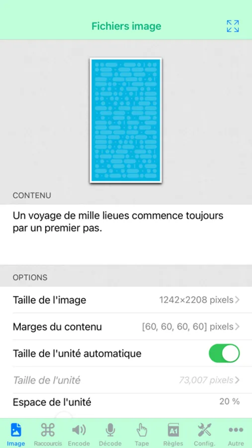 Create beautiful abstract wallpapers for your device (or posters to be printed) by customizing the display of the dashes and dots of the sentence you like.