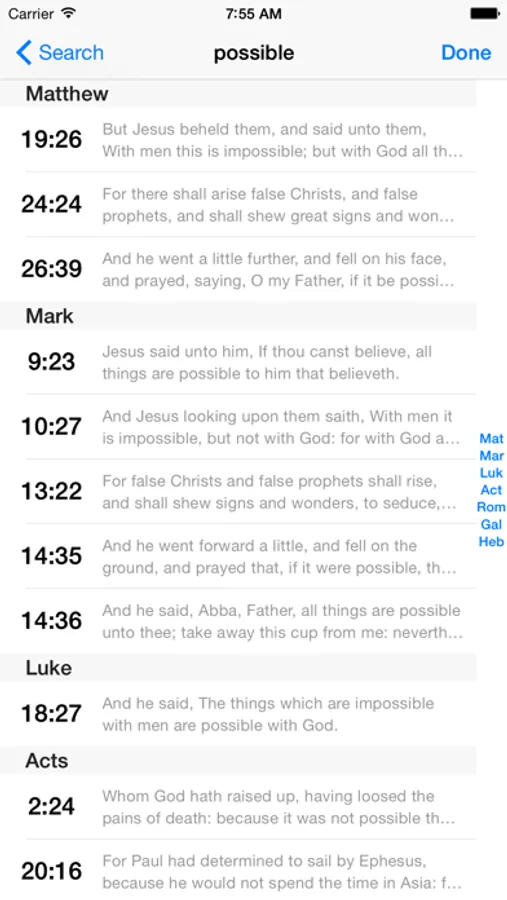 - Share selected verses via Messages, Mail, Facebook, Twitter & more