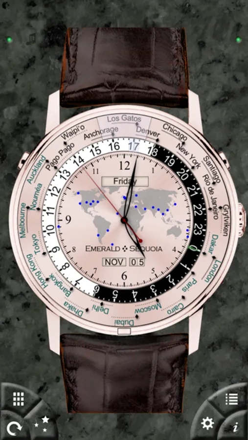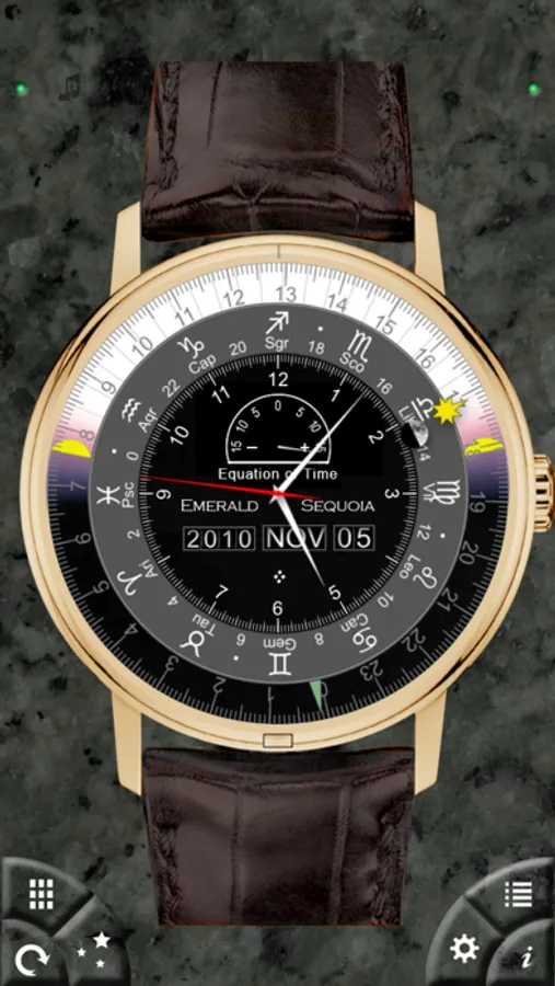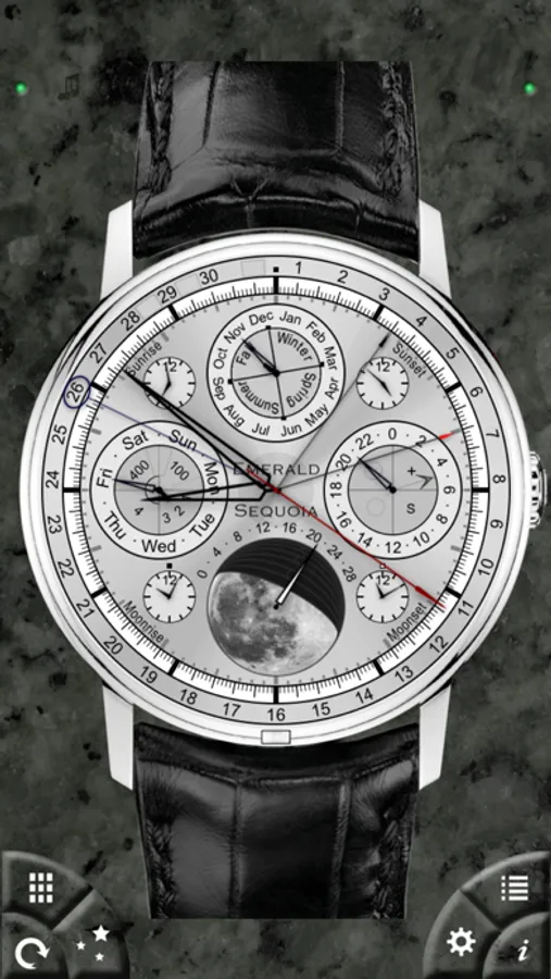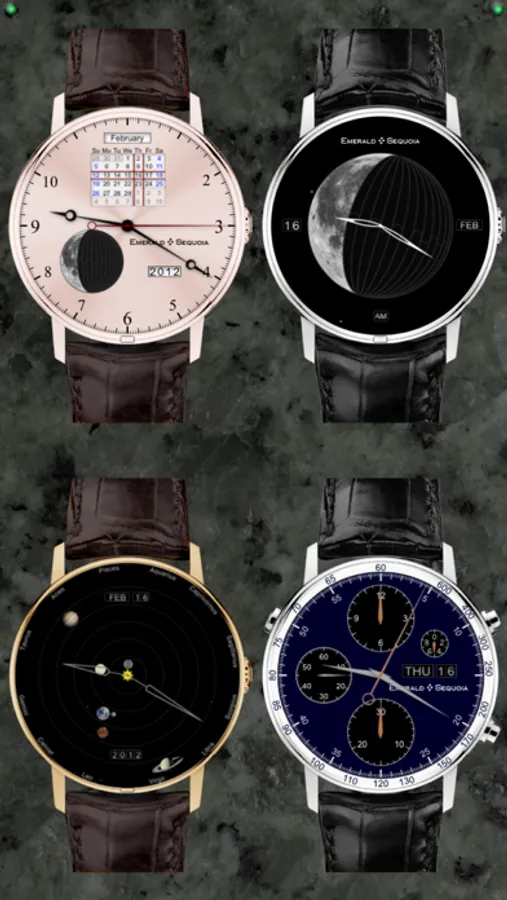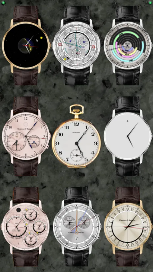 These models of high-end mechanical watch faces contain many of the most complex "complications" found in real watches, plus refinements found nowhere else. All displays maintain the look and feel of real mechanical objects, but with the time and location accuracy of the iPhone.